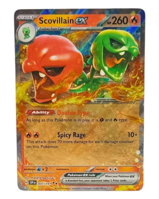 Scovillain EX Serie: Scarlet & VioletSet: Surging SparksNummer: 037Type: FireRarity: Double RareCondition: NMPhoto: Stock